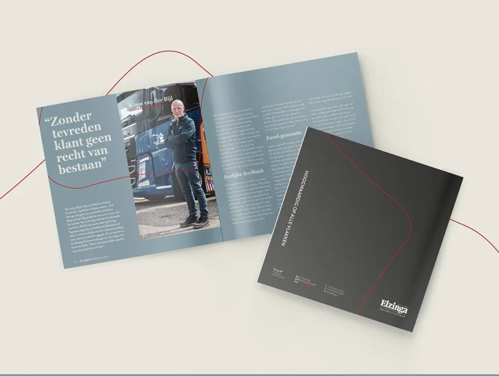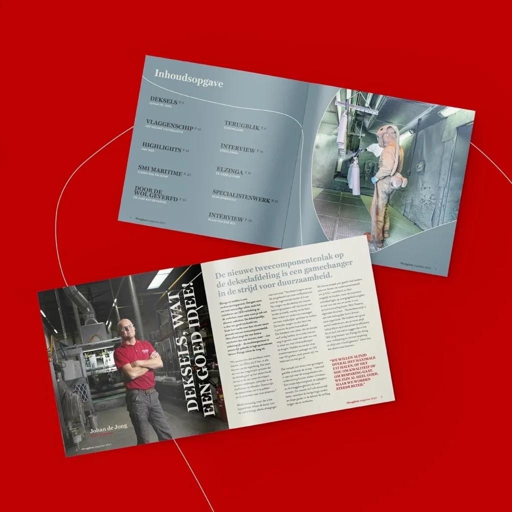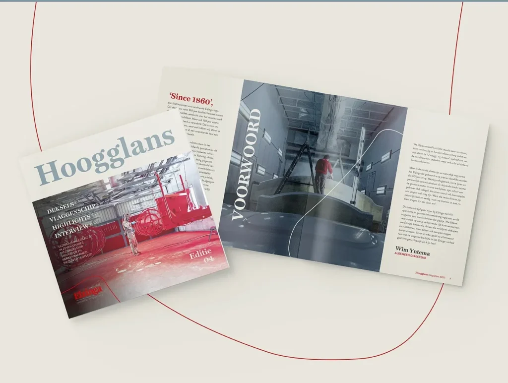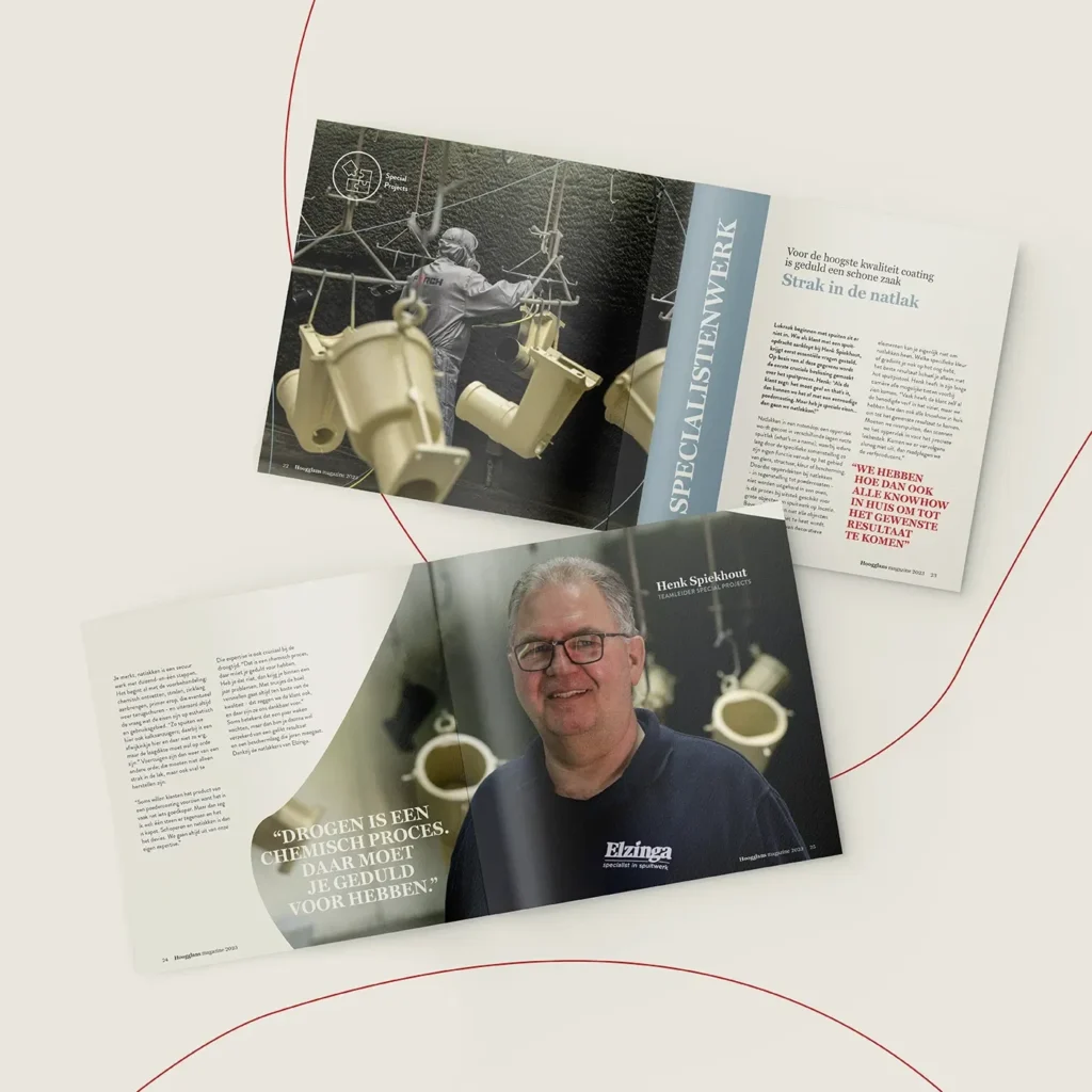 Meer dan anderhalve eeuw aan ervaring gooi je nou eenmaal niet zomaar bij het grof vuil. Tegelijkertijd lieten we in de beeldtaal zien dat Elzinga klaar is voor de toekomst, met stoere, haast futuristische fotografie die wordt gekenmerkt door strakke lijnen en ambachtelijk werk. Wat nog meer? Een fonkelnieuwe website, videotestimonials van tevreden klanten en partners, en uiteraard het paradepaardje: de Hoogglans. Een eigen magazine dat Elzinga de kans biedt de diepte in te duiken, projecten uit te lichten en haar expertise te bewijzen. Zo komt het familiebedrijf nog eens goed uit de verf!