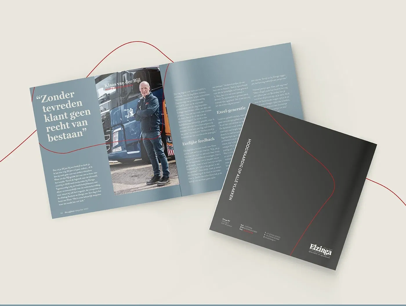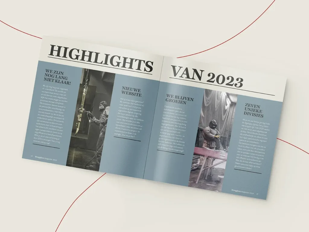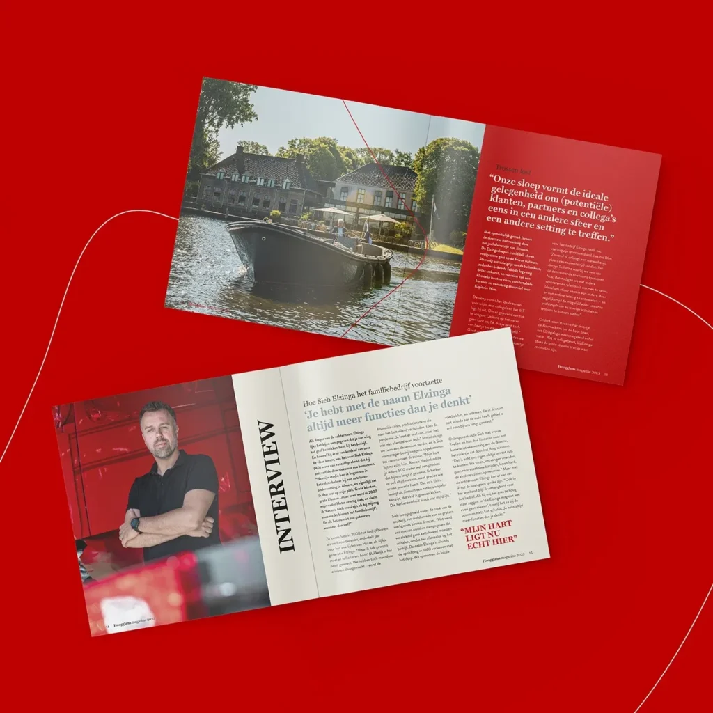 Meer dan anderhalve eeuw aan ervaring gooi je nou eenmaal niet zomaar bij het grof vuil. Tegelijkertijd lieten we in de beeldtaal zien dat Elzinga klaar is voor de toekomst, met stoere, haast futuristische fotografie die wordt gekenmerkt door strakke lijnen en ambachtelijk werk. Wat nog meer? Een fonkelnieuwe website, videotestimonials van tevreden klanten en partners, en uiteraard het paradepaardje: de Hoogglans. Een eigen magazine dat Elzinga de kans biedt de diepte in te duiken, projecten uit te lichten en haar expertise te bewijzen. Zo komt het familiebedrijf nog eens goed uit de verf!