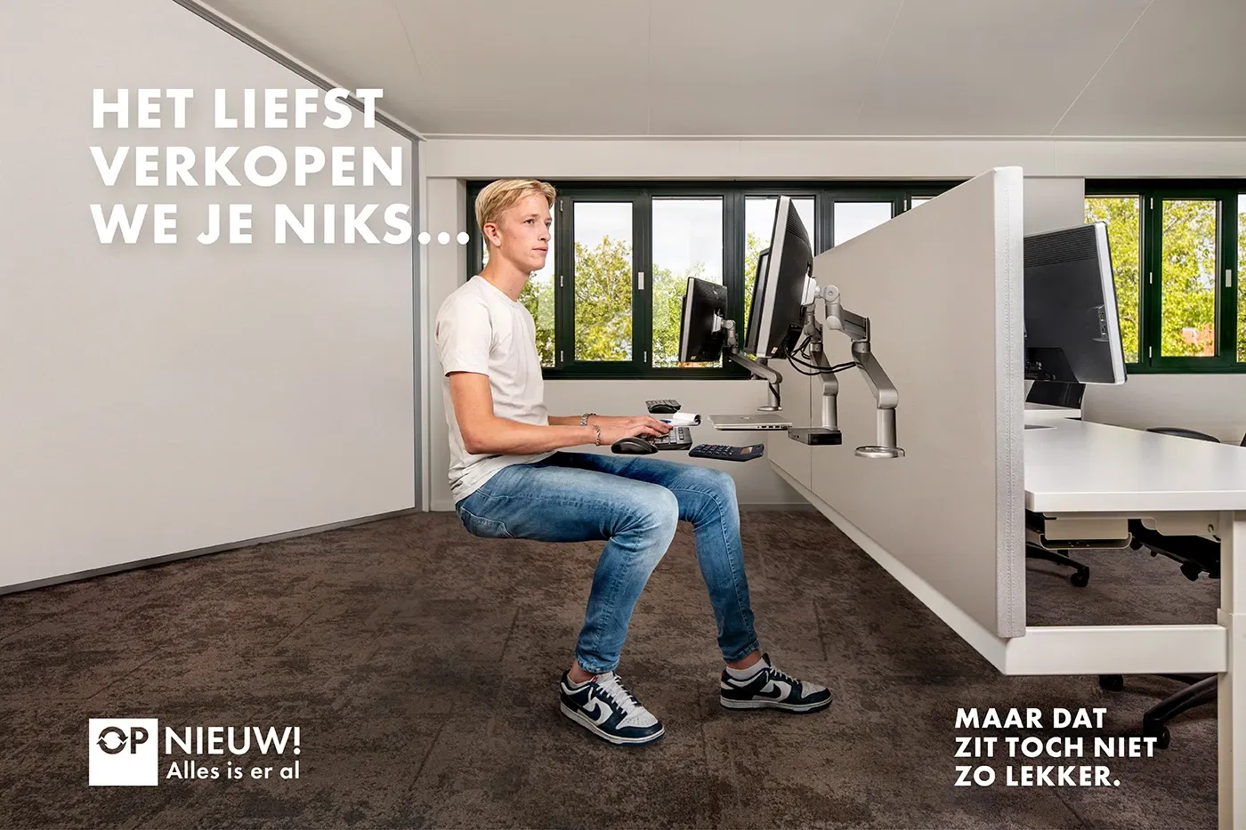 Geen focus op meubels, maar op mindset. Geen snelle verkoop, maar radicale circulariteit. Met een visuele stijl waarin afwezigheid de hoofdrol speelt, dagen we uit tot verbeelding en tot actie. Ontdek hoe ‘het liefst verkopen we u niets’ een krachtige commerciële campagne werd.